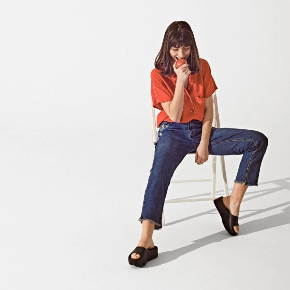 We love the relaxed and comfortable summer days. For you to go on a walk by the beach with your favorite dresses, these Lemon Jelly Sunny Black platform slides will keep you company.
